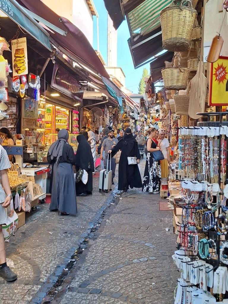giving the houses a beautiful, terraced appearance. The meeting point of the Bosphorus and the Golden Horn is dotted with mosque domes and minarets. Istanbul rightfully bears the title “Gateway to Asia.” The bazaars, the goods, scarves, textiles, spices and countless tools made by local craftsman remind me of India, dressed in the coat of the civilized world.