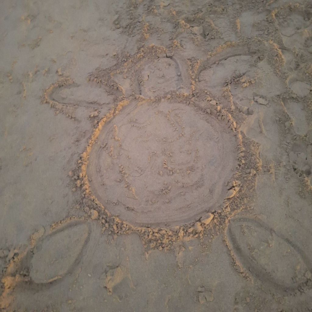 The water was so shallow in places that I was nearly sitting on the seabed. Thanks to the waves, we kept shifting positions, and at one point, the turtle’s little head was just 30 cm from mine, we looked at each other. It was magical! I could even gently touch its shell, it was that close. I found it interesting that sand had settled on it, and it felt like a slightly rubbery, strong material that somehow still felt alive. A few times, our legs bumped due to the waves, and once, it was grazing right in front of my feet. I noticed 1–2 small fish swimming beneath it. One colorful little fish, just a few centimeters long, even nibbled at my ankle 😏
