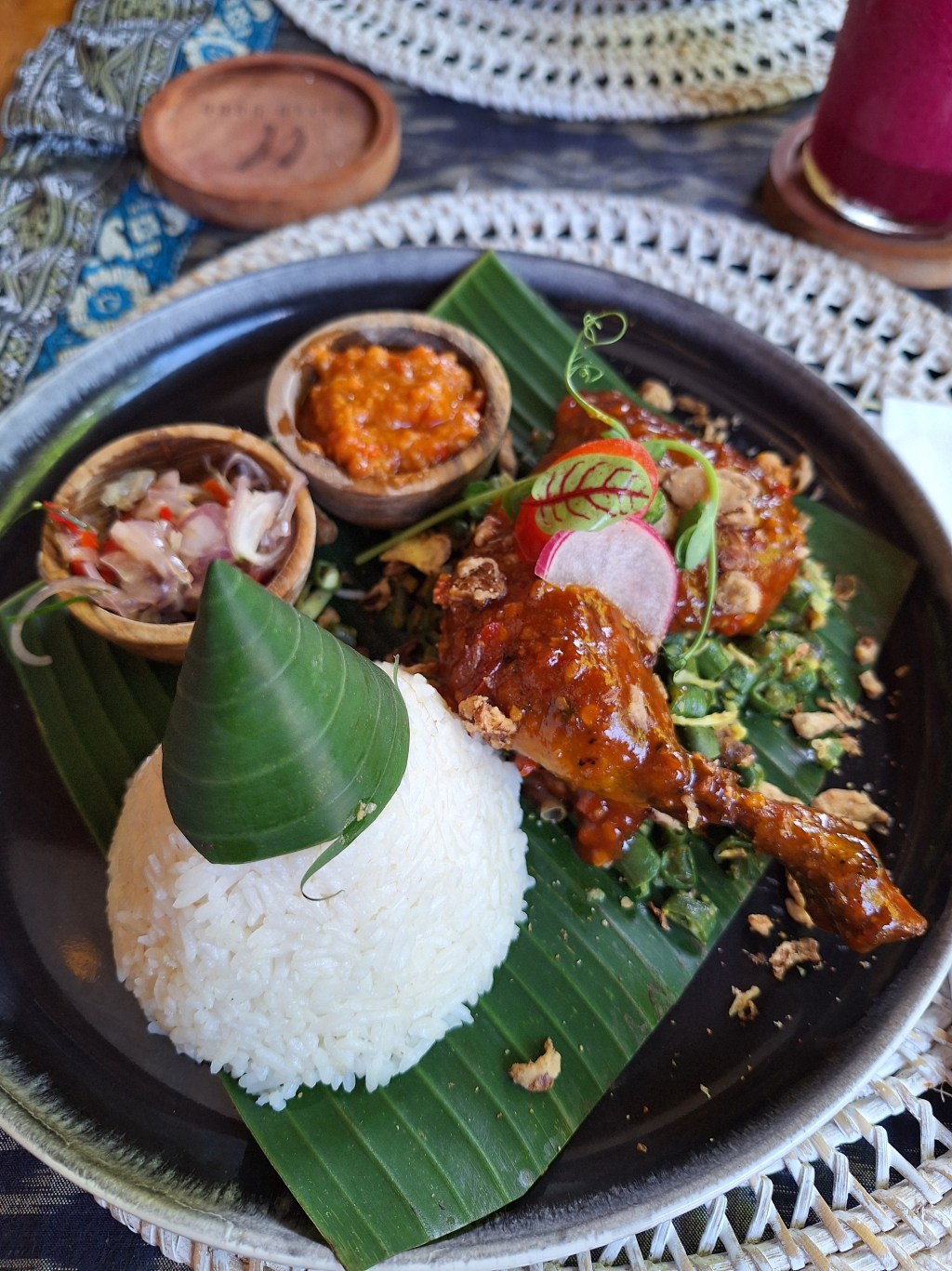 The small portions are served in little baskets made out of banan leaves. Super authentic!
