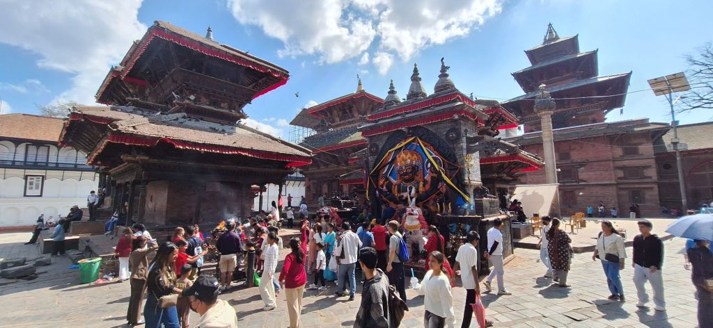 Kathmandu is a busy city with skilled drivers who pass each other with just 1–2 centimeters of clearance on narrow streets. Everyone is selling something, even if it’s just a few vegetables. It’s a lively, bustling city. Unfortunately, during the dry season it gets quite dusty.