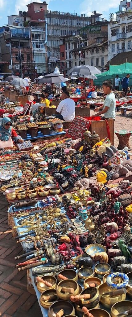 The center of Kathmandu is Thamel where many bazaars are found. Scarves made of yak wool, Kashmiri wool, singing bowls, sacral tools, thangka paintings, sound bowls etc. are sold in a massive amount.