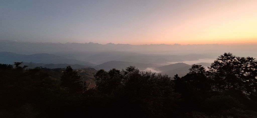 From Kathmandu, Nagarkot is around 1 hour by car via a winding road. It’s a small town mainly consisting of hotels, at 1900 meters elevation offering panoramic views of the Himalayan range.